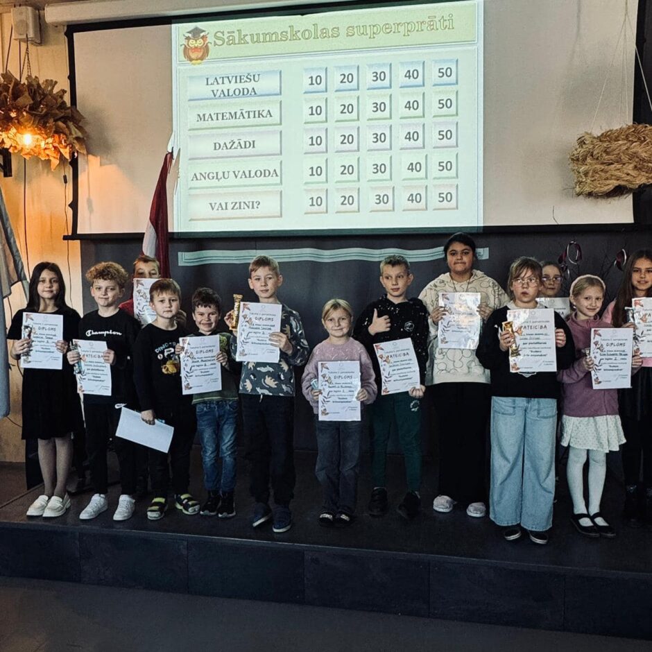 Šonedēļ mūsu skolas sākumskolēni pārvērtās par īstiem zināšanu meistariem! Viktorīnā “Superprāti” jaunie prāti sacentās visdažādākajās zināšanu jomās. Pēc sīvas cīņas par uzvaru triumfēja komanda “Trīs gudrie”, kuru veidoja Egija Eimija Druļkalne (1.b klase), Markuss Kiškorns (2.a klase) un Miks Dreimanis (3.b klase).