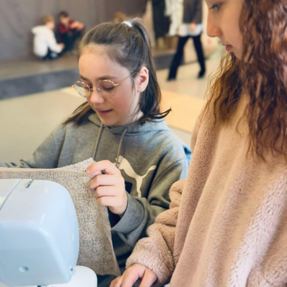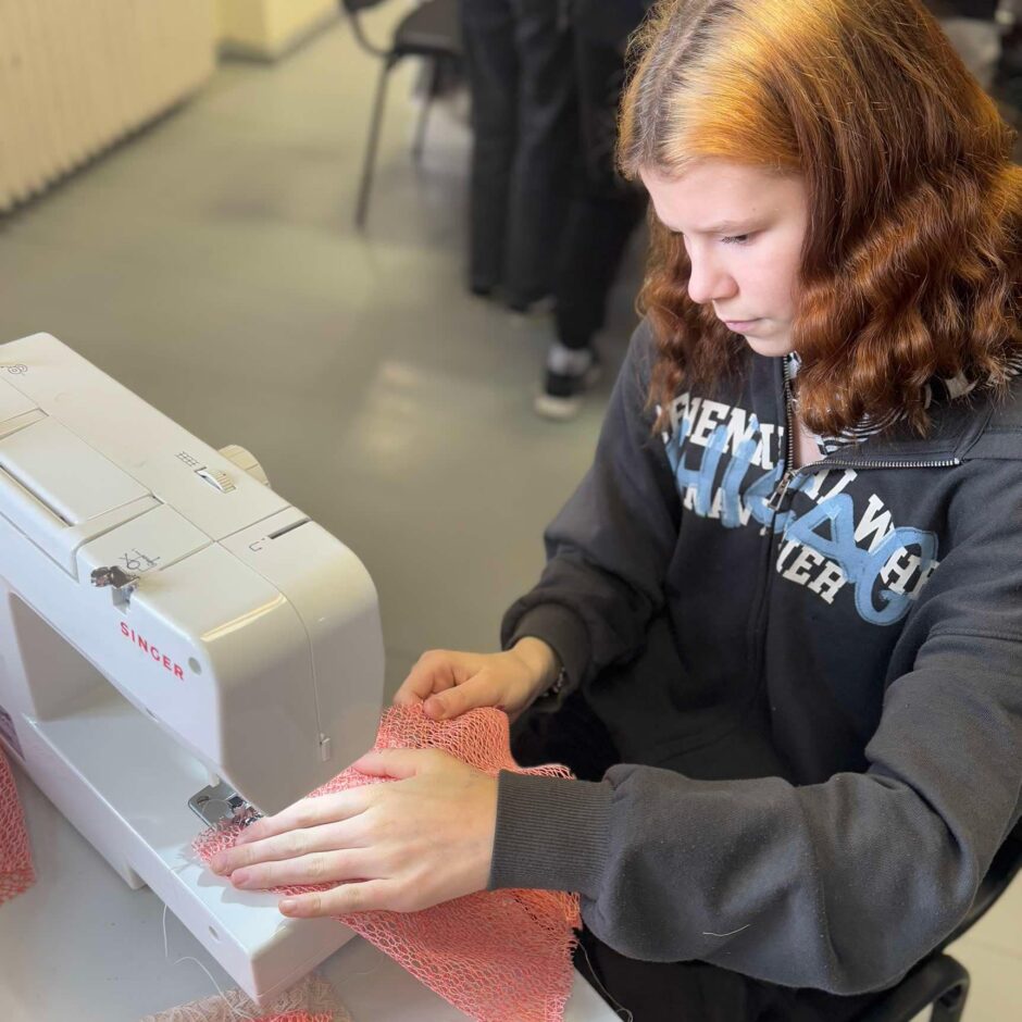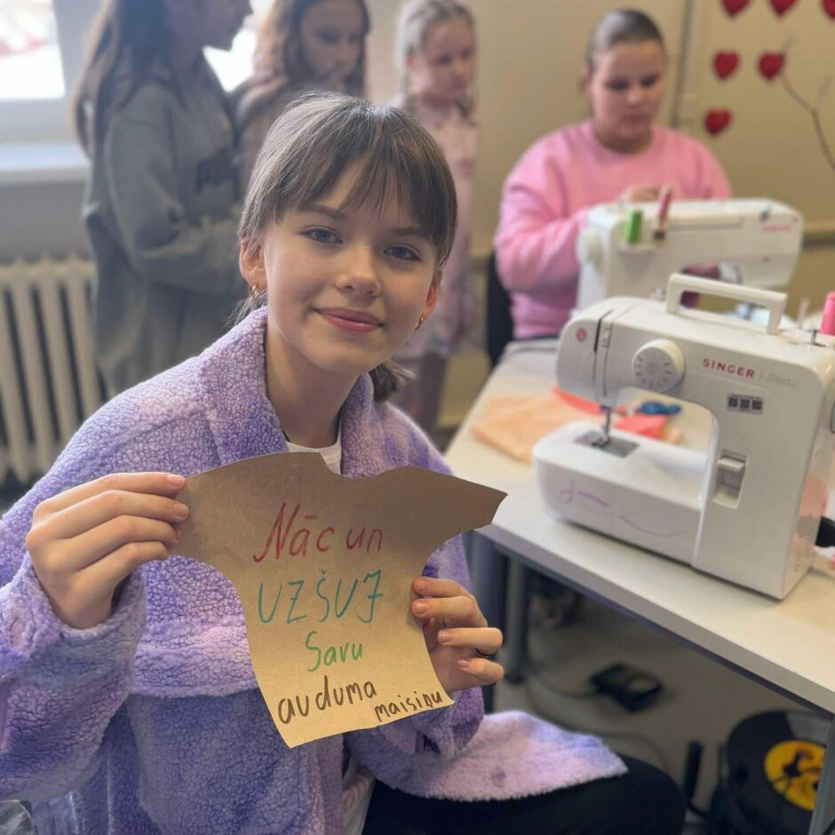 Audumu maisiņu šūšana: Skolēni varēja iemācīties šūt auduma maisiņus, kas ir videi draudzīgāka alternatīva plastmasas maisiņiem.