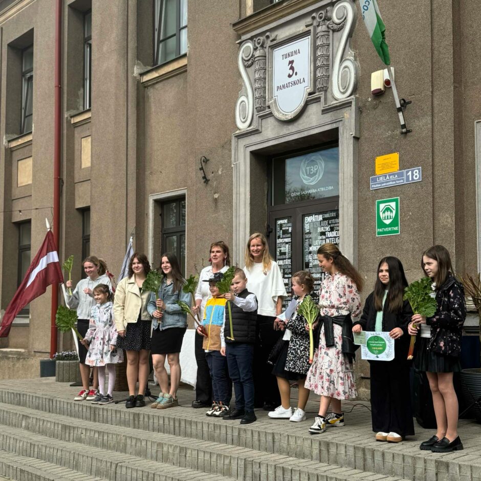 Šodienas svinīgajā pasākumā īpaši sveicām arī Ekoskolas organizētās akcijas “Zaļā palodze” dalībniekus, kuriem tika pasniegti diplomi par aktīvu un radošu piedalīšanos. Mēs ļoti lepojamies ar mūsu skolēnu ieguldījumu vides jautājumos!