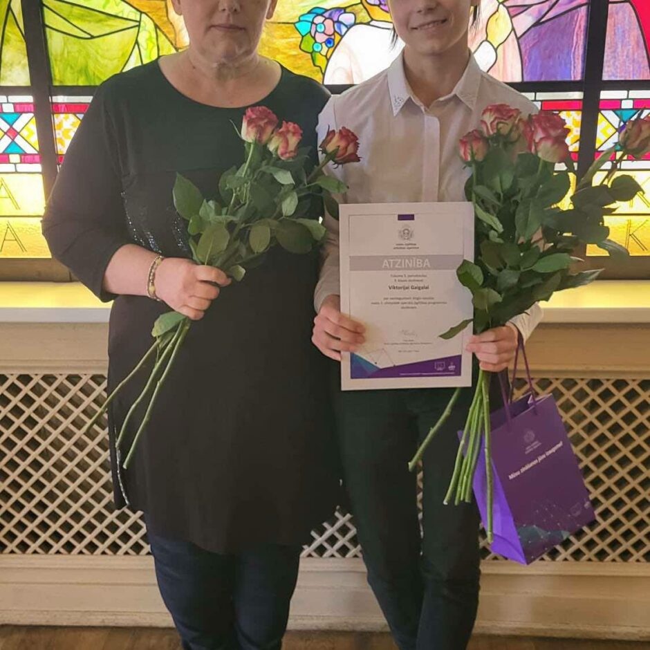 Savukārt, vēl viena mūsu skolas skolniece, Viktorija Gaigala, saņēma atzinību par savu sniegumu olimpiādē. Viktorijas centība un zināšanas angļu valodā ir novērtētas valsts mērogā. Mēs lepojamies ar Viktorijas sasniegumu un pateicamies viņas skolotājai Natalijai Volkonovskai par nozīmīgo ieguldījumu Viktorijas panākumos.