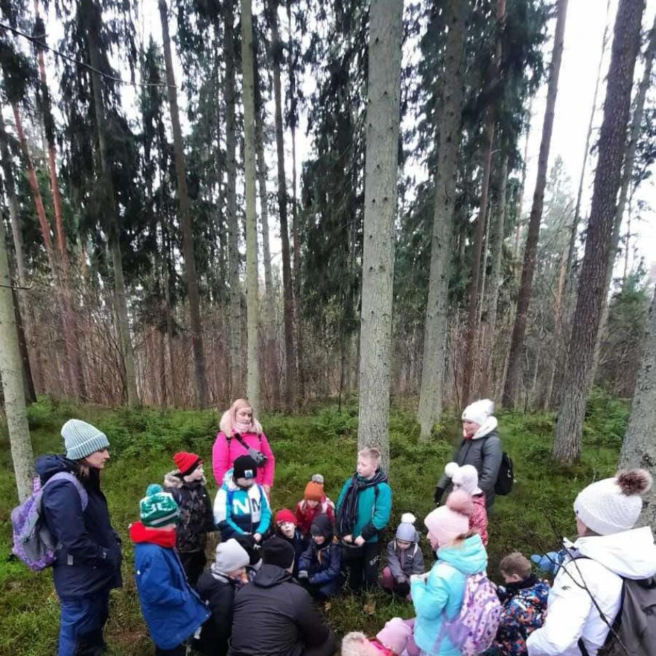 Ziemas prieki bez sniega: 1.b klases pārgājiens Milzkalnē ar “Mana Daba”